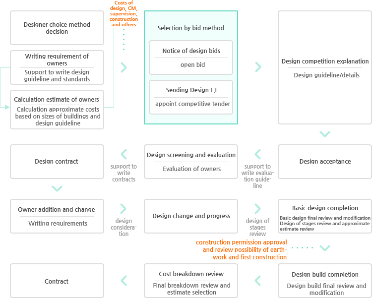 design stage. Reduction of costs through VE and construction review at the design stage.