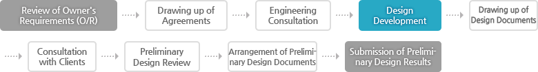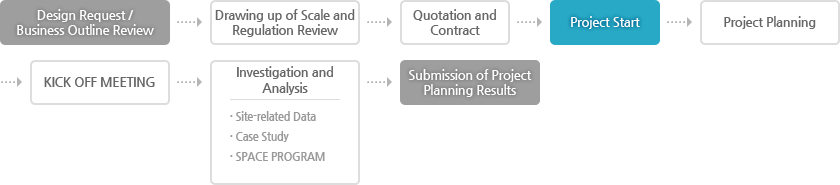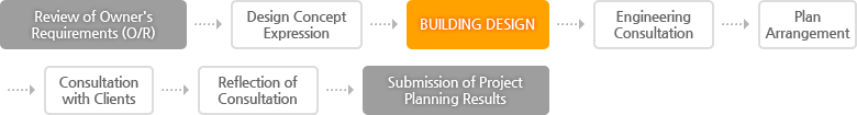 By investigating and analyzing all project-related social, legal and environmental issues, we set up basic targets and directions to design structures. Comprehensive plans and policies for building functions, scales, forms, structures and materials are established, and all the matters of arrangement, plans, elevations, structures, materials, equipment systems, schematic construction expenses and duration are determined. Such matters are reflected in design plans after consultation with clients. We set up a clear and rational design goal by analyzing all the matters of projects, and submit an optimal plan of creative and high-quality design to meet the challenges successfully to our clients. Project Planning