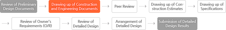 A stage of constituting drawings precisely to enable actual construction based on documents approved in preliminary design.